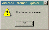The blinking star also serves as a link to a description of the location it marks on the map, if such description is available. Normally, a description will take the form of a web page within the simulation. If no description is available, a popup message will appear. There are two types of popup messages, shown below.
